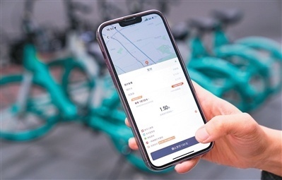 市民在北京乘坐滴滴青桔单车后,使用数字人民币支付车费。 靳安然摄