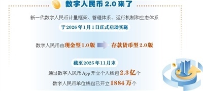 1月1日,新一代数字人民币计量框架、管理体系、运行机制和生态体系正式启动实施,数字人民币迎来了2.0版。